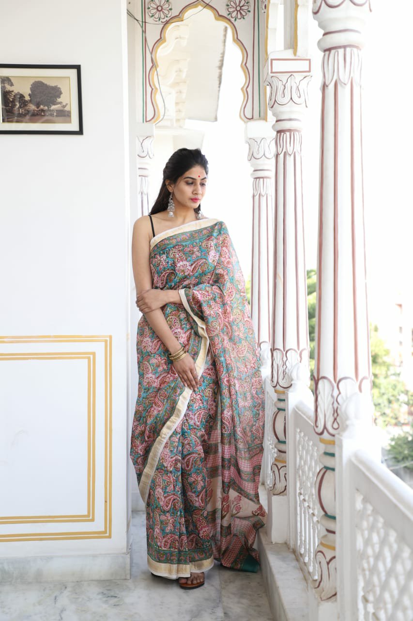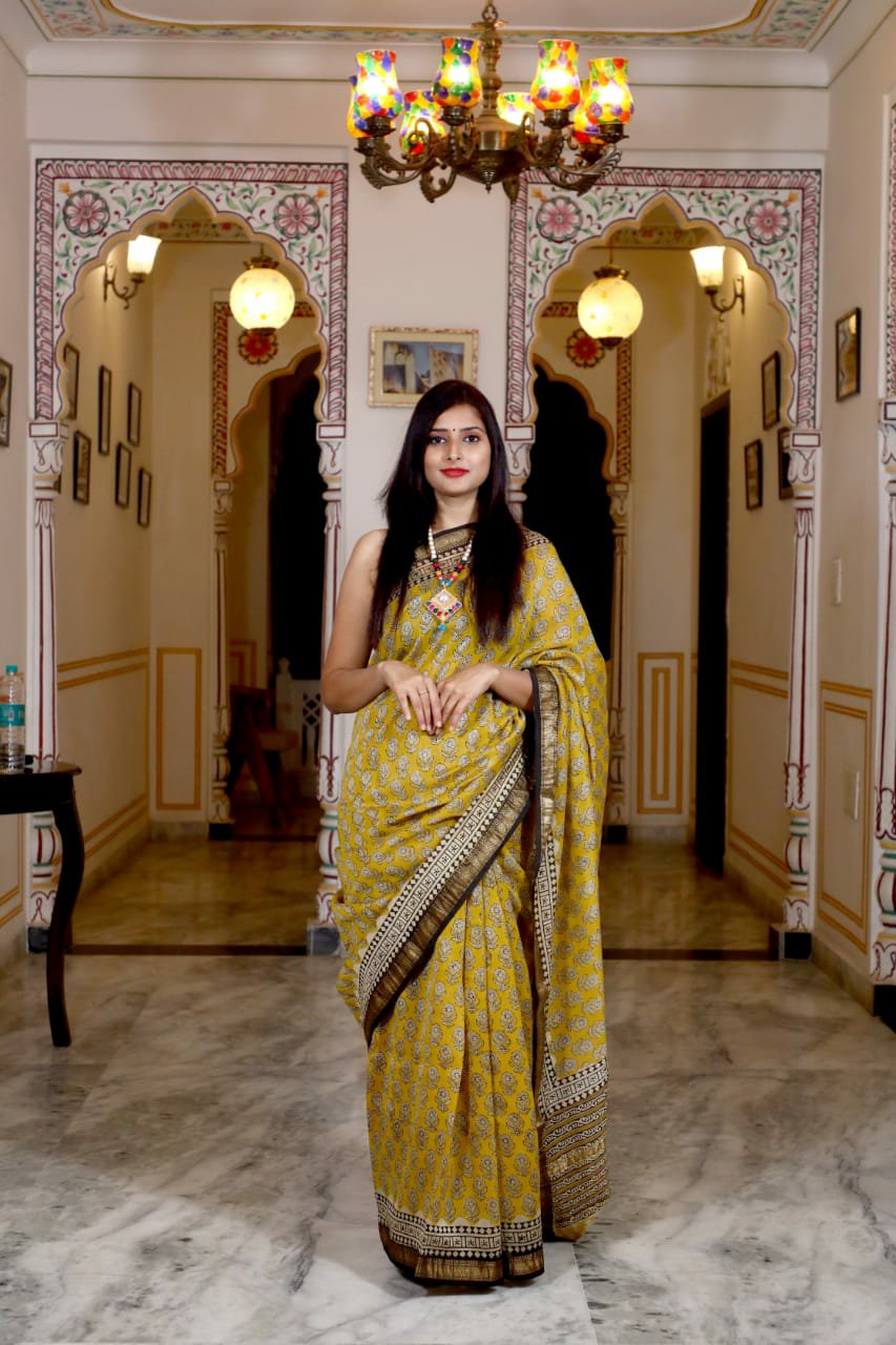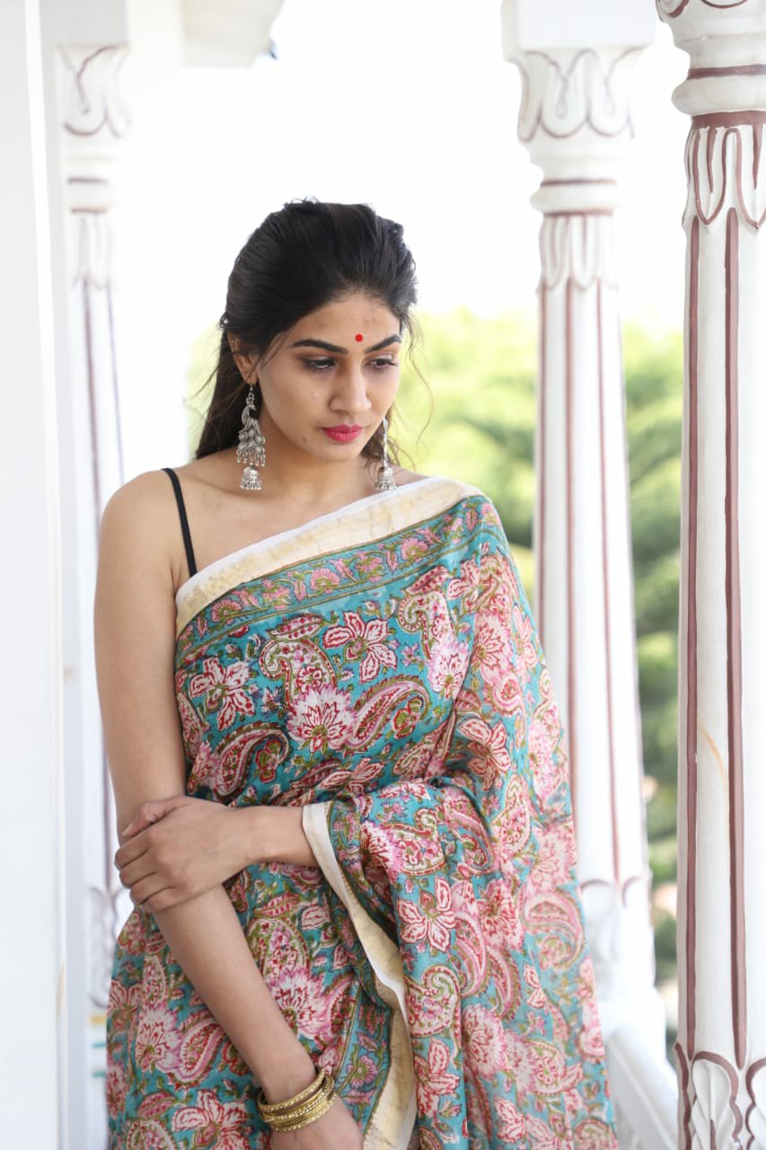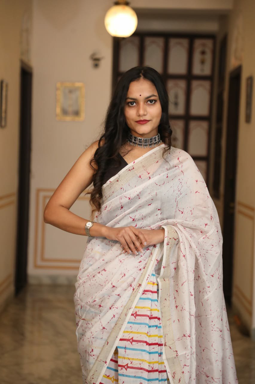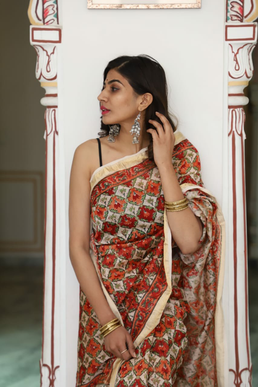 Beautifull Athentic Hand Block Printed Maheshwari Silk Sarees