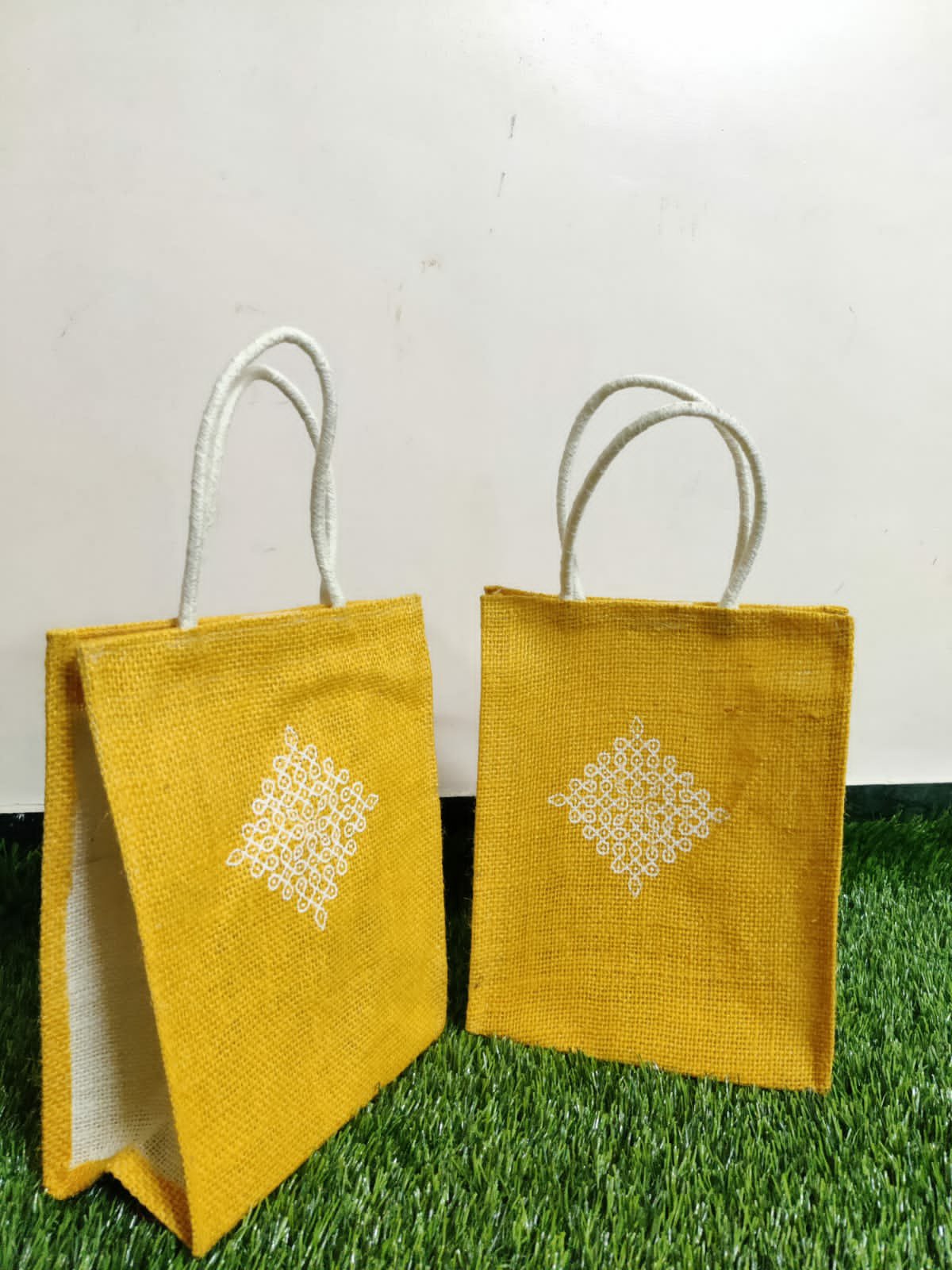 Thambulam Jute bags Posted on July 20, 2021 by bendthetrend19 Name : Thambulam bag/gift bagsMaterial :Jute with kolam print on it….Size : 8/10/4 inchesPrice : 70rs each with velcroPrice : 80 rs each with zipMoq : 30 pcs.Bulk also same priceMixed colours availableShipping extra Share this: Click to share on Facebook (Opens in new window) Facebook Click to share on WhatsApp (Opens in new window) WhatsApp Click to email a link to a friend (Opens in new window) Email Click to share on LinkedIn (Opens in new window) LinkedIn Like Loading... Related