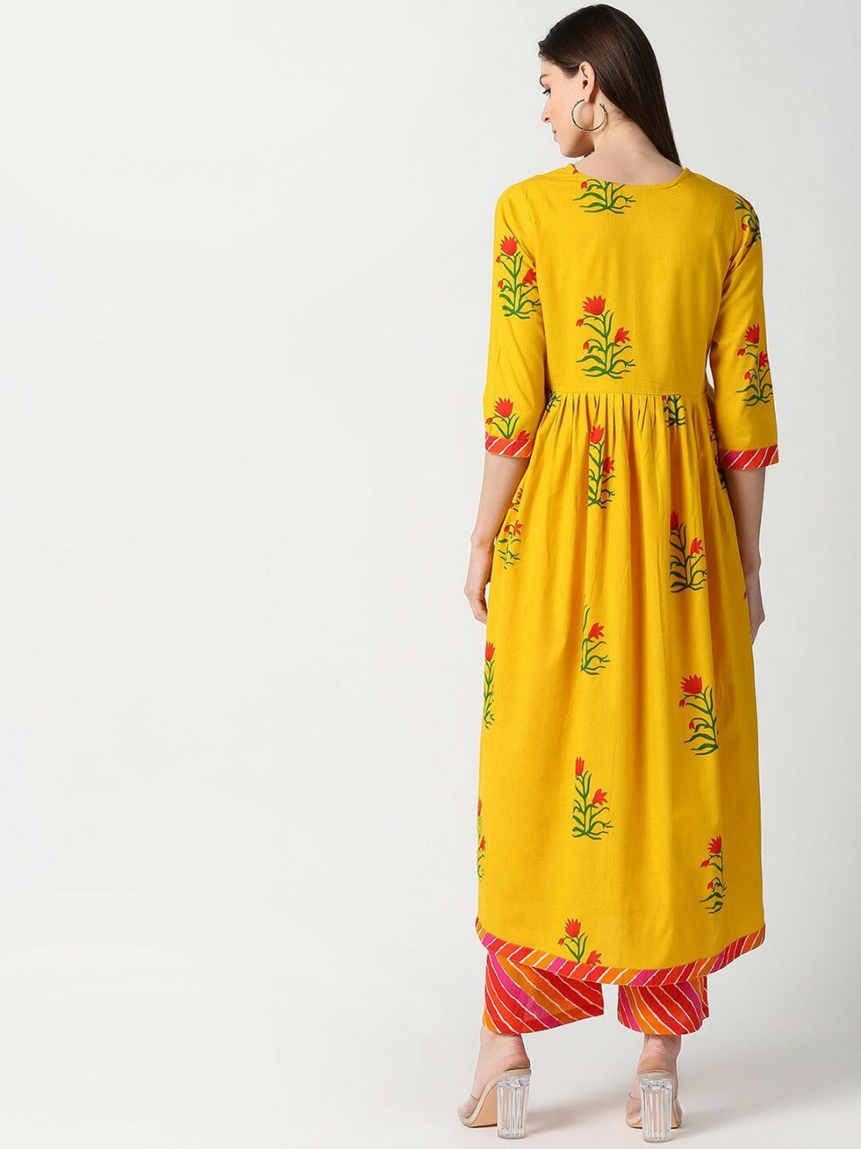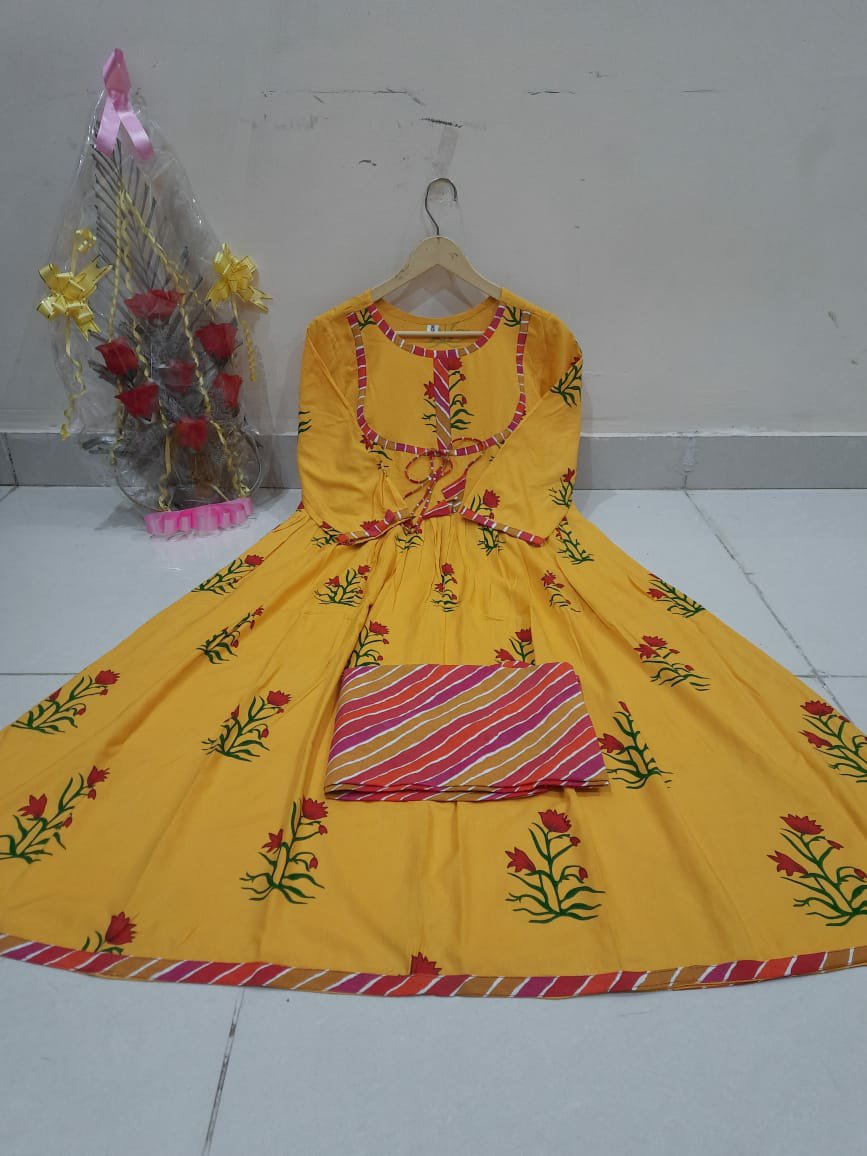 *Premium Heavy Printed Rayon Kurti With Lahriya pant *