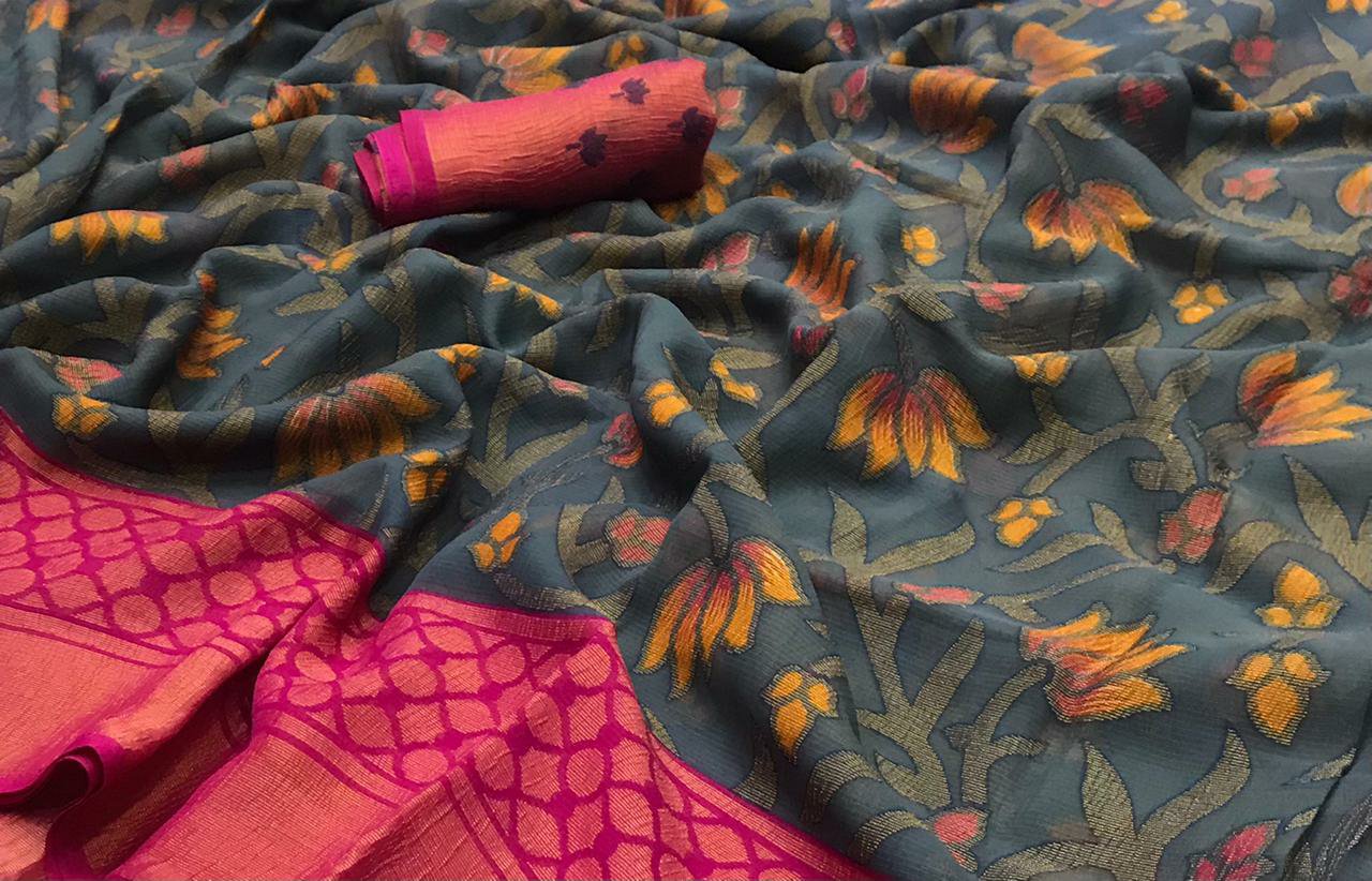 Exclusive Brasso Sarees Posted on August 4, 2021 by bendthetrend19 Launching exclusively new arrived variety of line to line brasso 01 Material – Chiffon brassoRate – 745+ shipping extra Gift your loved ones Share this: Click to share on Facebook (Opens in new window) Facebook Click to share on WhatsApp (Opens in new window) WhatsApp Click to email a link to a friend (Opens in new window) Email Click to share on LinkedIn (Opens in new window) LinkedIn Like Loading... Related