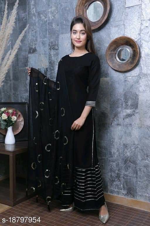 Rayon fabric kurti with sharara with chiffon dupatta