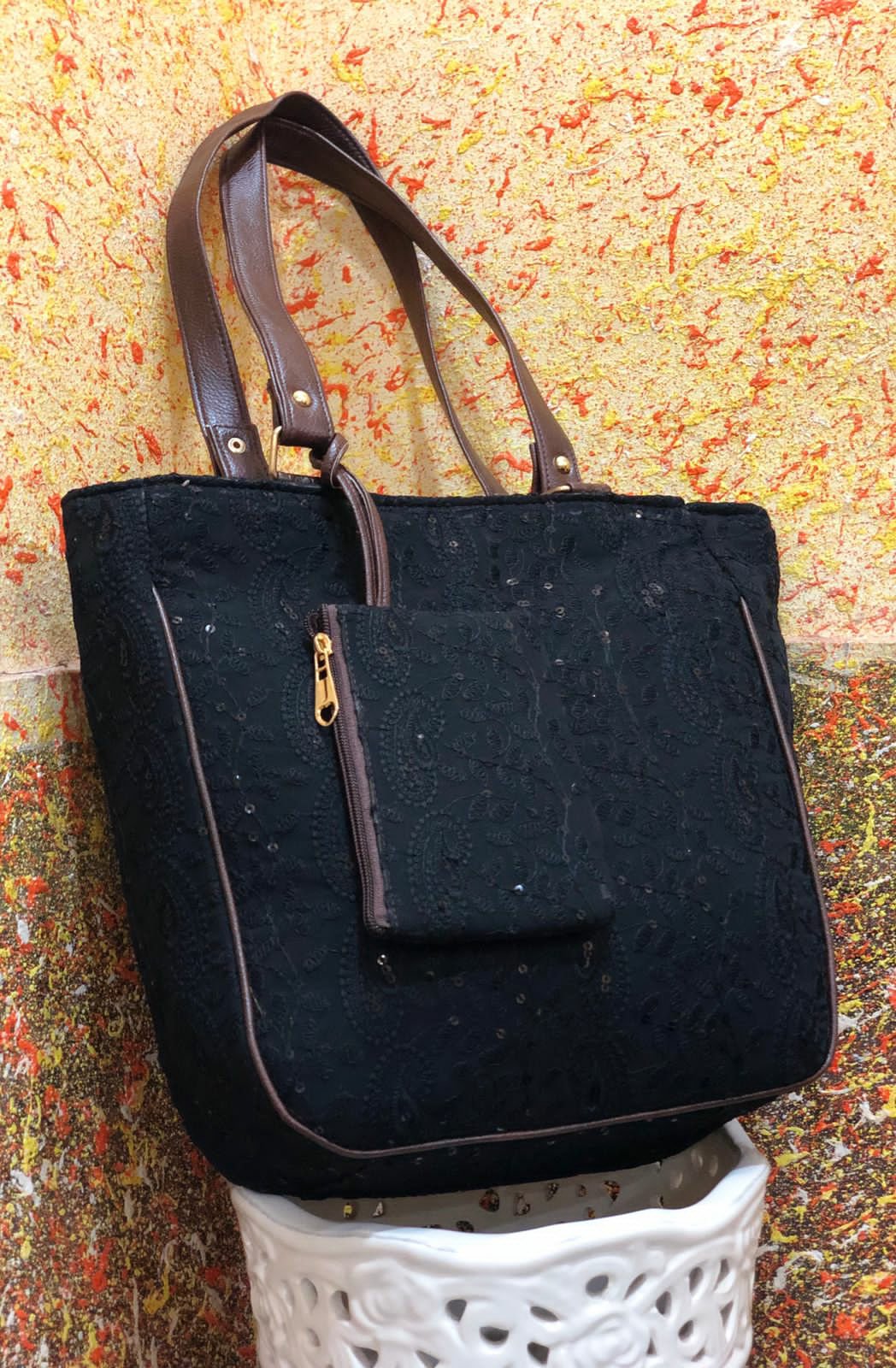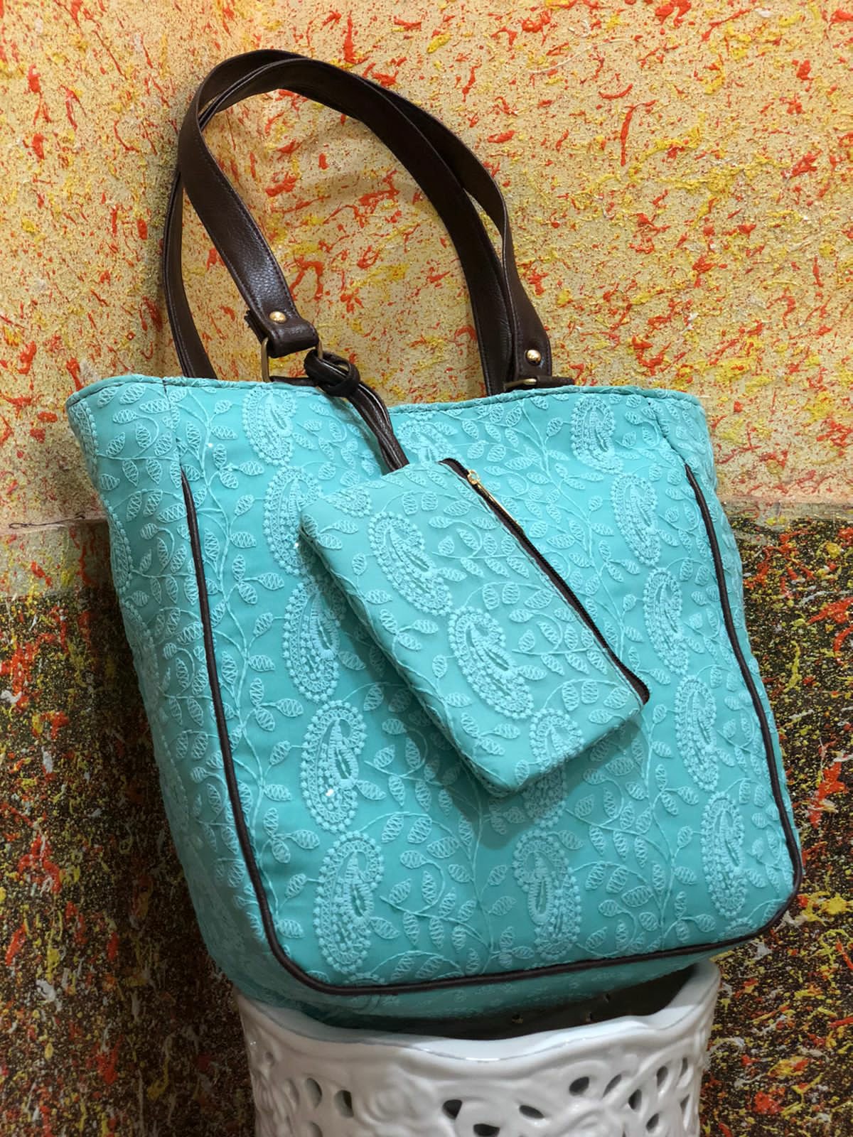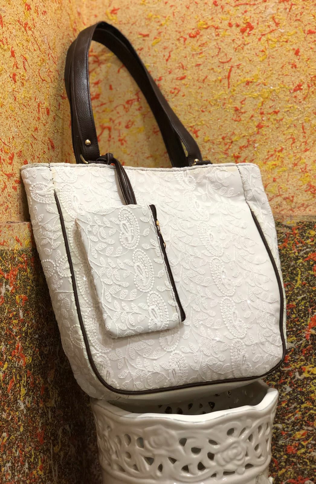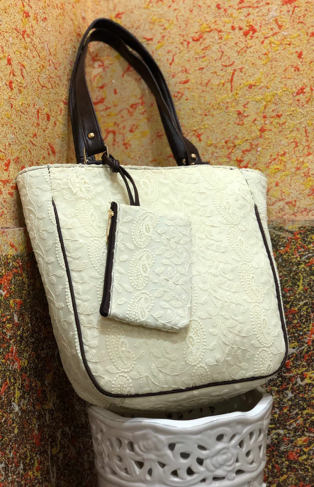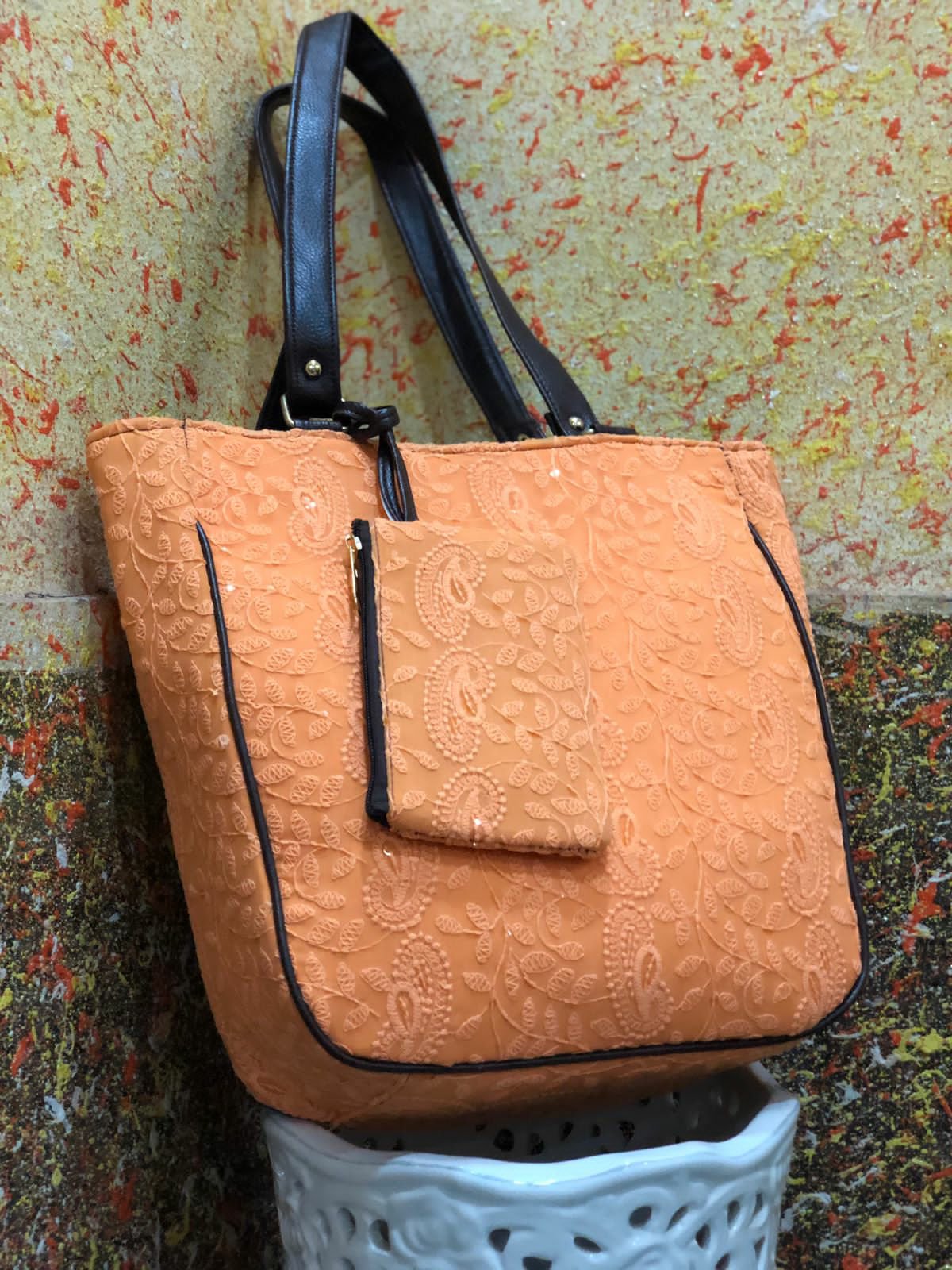 Chikankari Bags Posted on August 12, 2021 by bendthetrend19 *The Chikankari Pouch bag *Double partition with back zipSize 14” x 11” with 4” baseDetachable coin pouch in frontMade in India 🇮🇳 a21Price 750+Shipping extra Share this: Click to share on Facebook (Opens in new window) Facebook Click to share on WhatsApp (Opens in new window) WhatsApp Click to email a link to a friend (Opens in new window) Email Click to share on LinkedIn (Opens in new window) LinkedIn Like Loading... Related