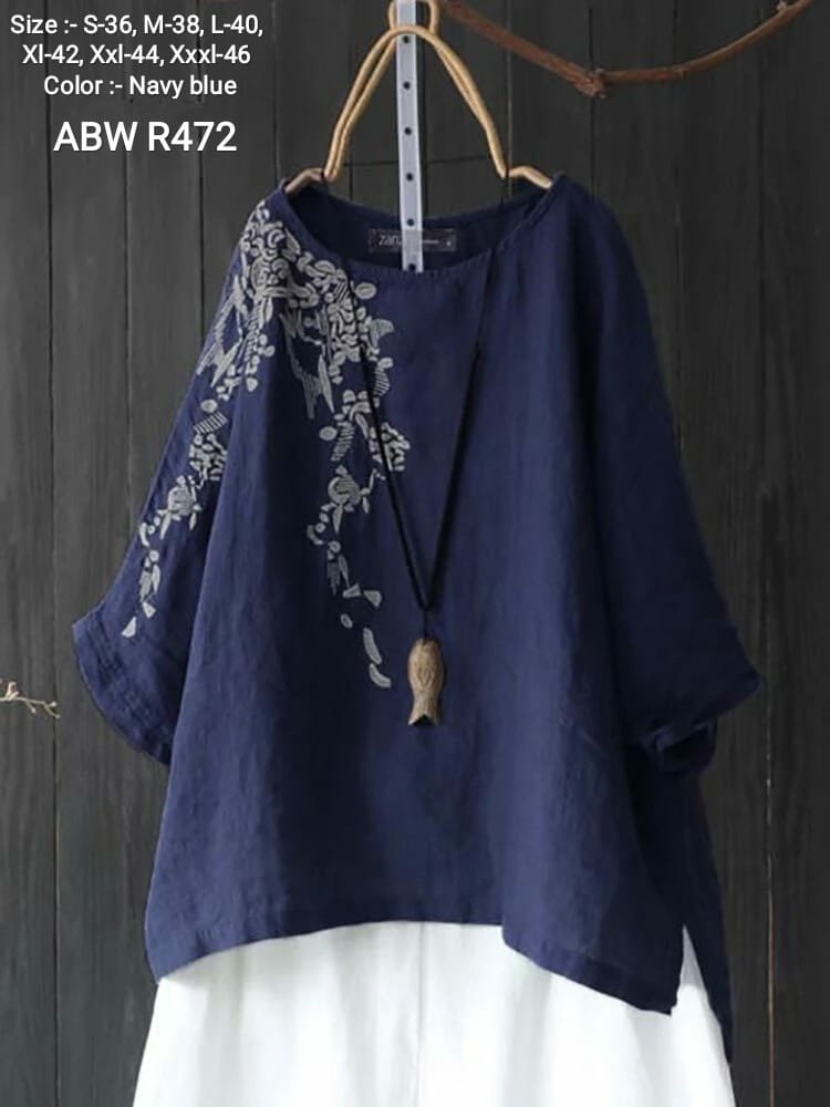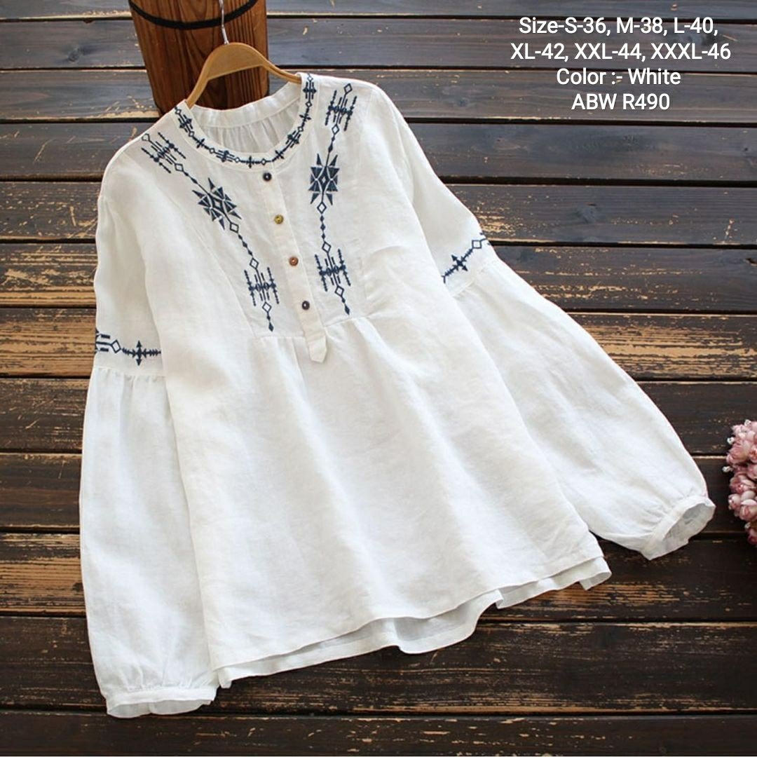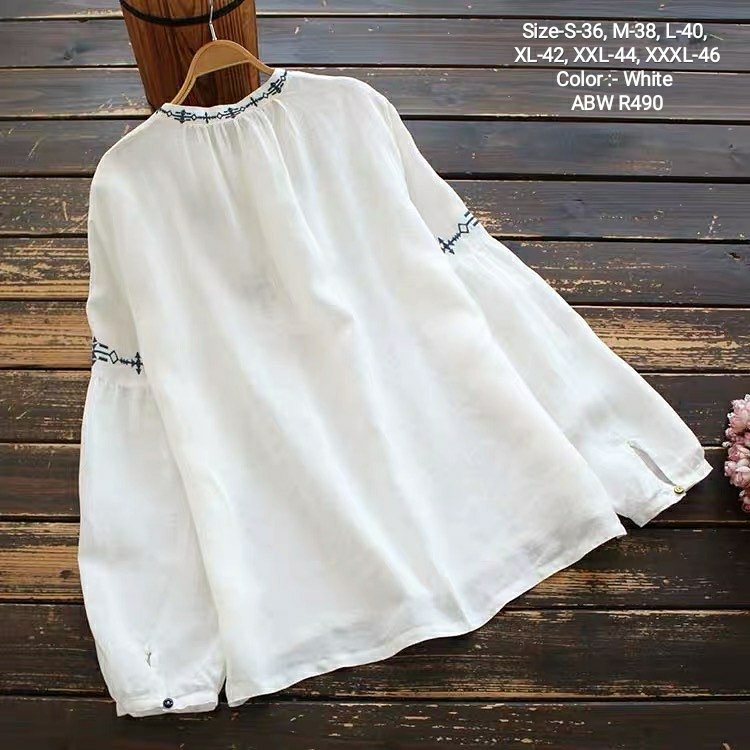 Embroidery Floral Long Sleeve Vintage Plus Size Blouse