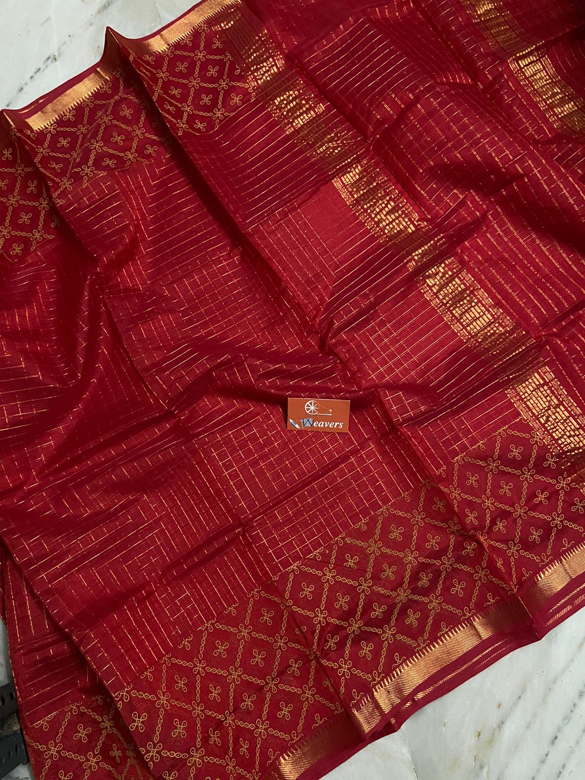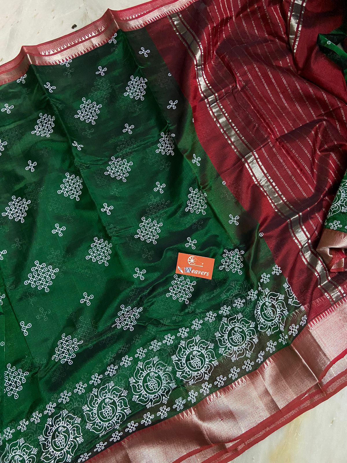 Mangalgiri Cotton Silk Sarees Posted on March 9, 2022 by bendthetrend19 *Pure Handloom Mangalagiri Cottonsilk saree *Wholesaree printed *Silver&Gold borders *Contrast&Running Pallu Blouse ac *Price: 3399 + shipping extra Share this: Click to share on Facebook (Opens in new window) Facebook Click to share on WhatsApp (Opens in new window) WhatsApp Click to email a link to a friend (Opens in new window) Email Click to share on LinkedIn (Opens in new window) LinkedIn Like Loading... Related