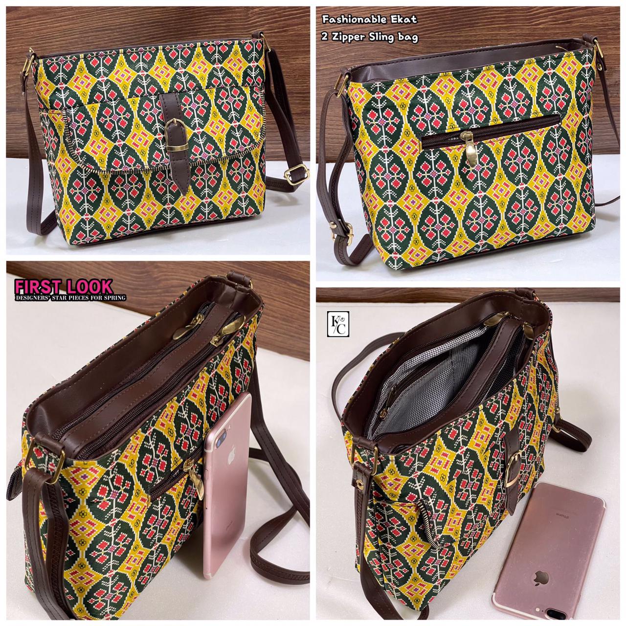 New Indiana Fashionable Zipper sling bag new colour Indian ikkat material Zipper Sling bag new print sling back side zip Woman Shoulder Messengers Side Sling bag
