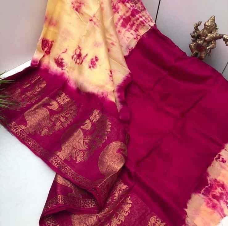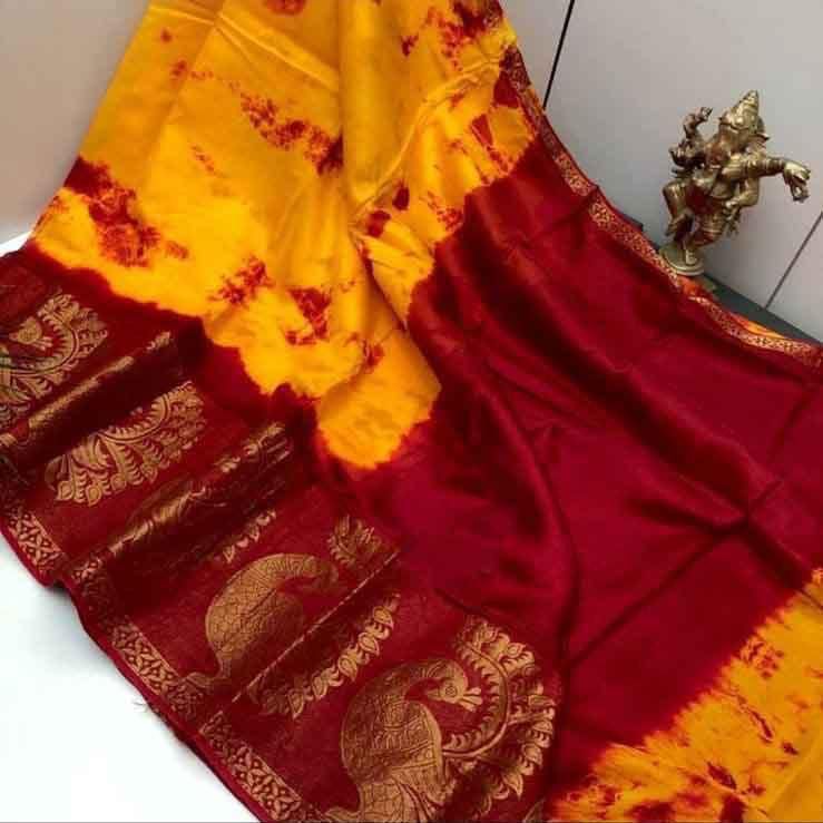 Tussar Silk Sarees Posted on March 28, 2022 by bendthetrend19 Soft n Lustrous Tussar Silk Saree With Shibhori Dyeing With Contrast Tie n Dye Pallu With Rich Big Zari Wooven Border With Contrast Blouse 01 Price :-1499/- free shipping NOTE:-ITS A HAND DYEING PRODUCT SO MINOR COLOUR DIFFERENCE MAY COME Share this: Click to share on Facebook (Opens in new window) Facebook Click to share on WhatsApp (Opens in new window) WhatsApp Click to email a link to a friend (Opens in new window) Email Click to share on LinkedIn (Opens in new window) LinkedIn Like Loading... Related