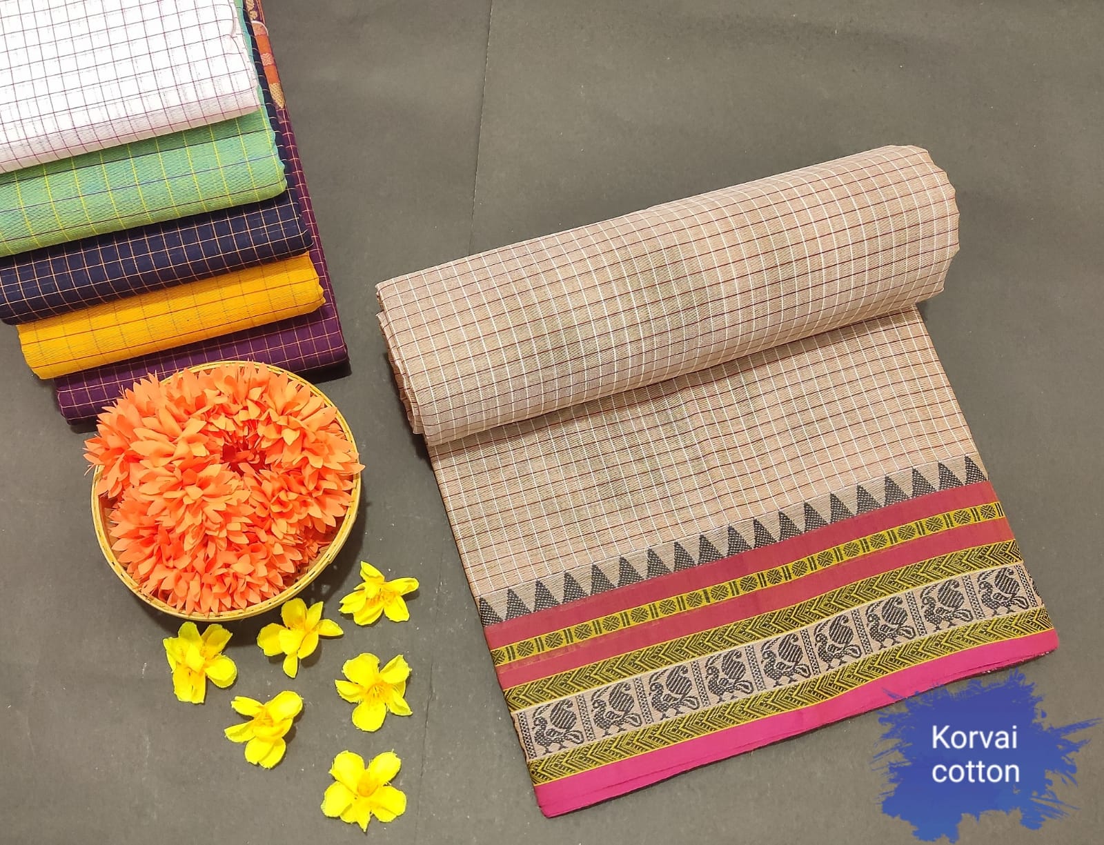 KORVAI COTTON SAREES ARE TRADITIONAL CHETTINAD COTTON SAREES WITH BEAUTIFUL KORVAI BORDER DESIGN