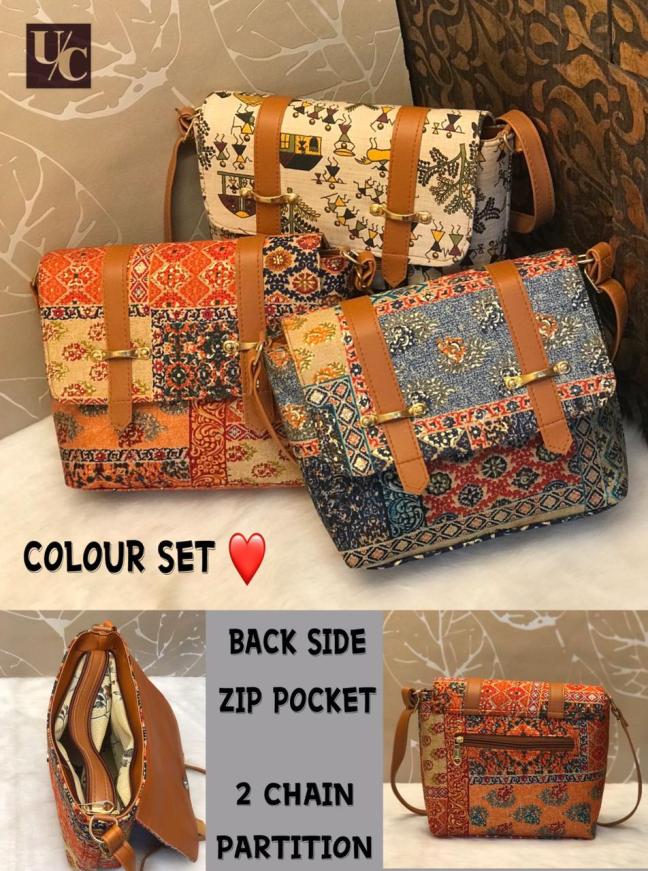 - New Fashion Women sling Womens shoulder Messenger side Bag ikkat material 2 Chain Partitions Latest New Design Backside zip pocket ALL NEW 3 PRINT’S Good Quality*
