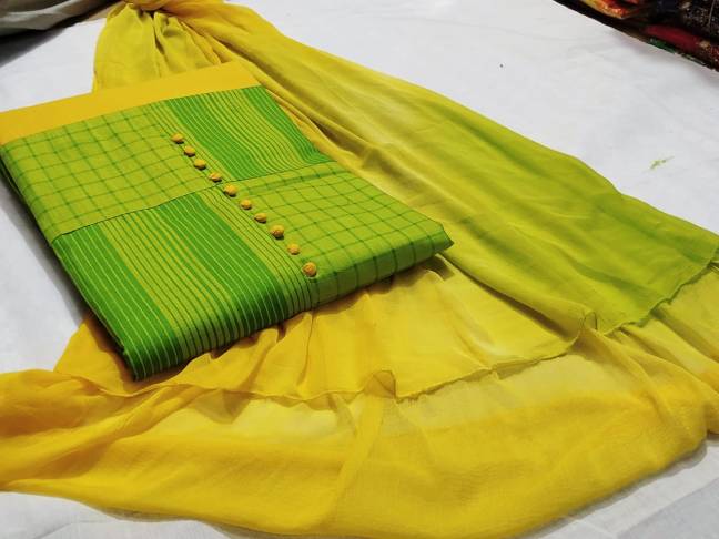 *TOP* top slub handloom *BOTTOM* cotton *DUPP* chiffon Price :1040/-.( 4 colors available)MS