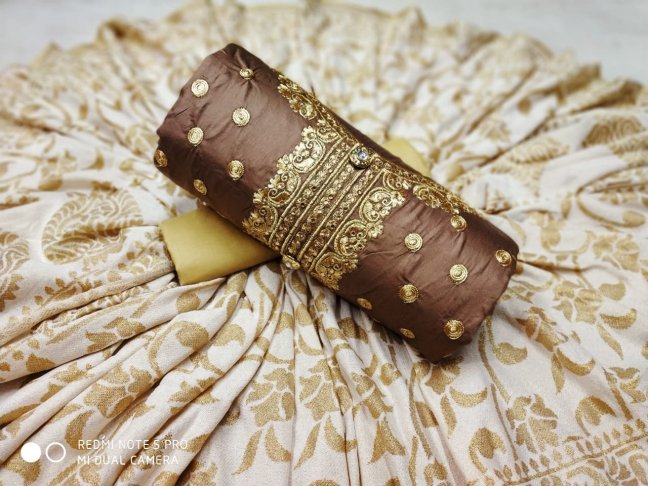 New Design Design-- Foil mirror work.all body Woollen hand work . Febric---Handloom cotton silk SF B.P--- Running B.P Price-- 1075/- All ready to dispatch. Very Good quality. Single pc available. Normal Wash