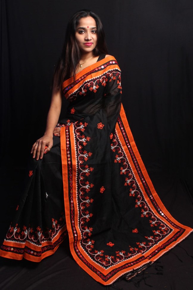 chiffon saree with emb work contrast worked blouse DR single 1099/-