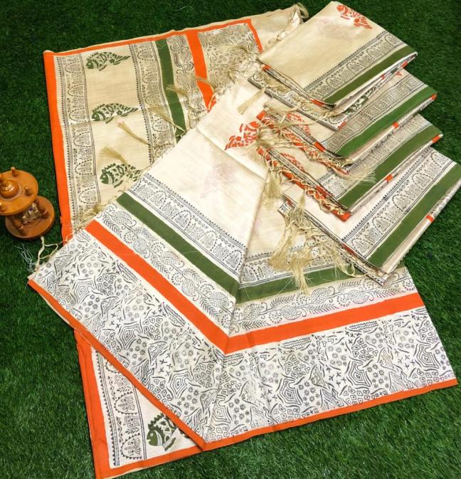 jute soft silk with printing Saree's, super quality good price only available stock DR Price:1675/-