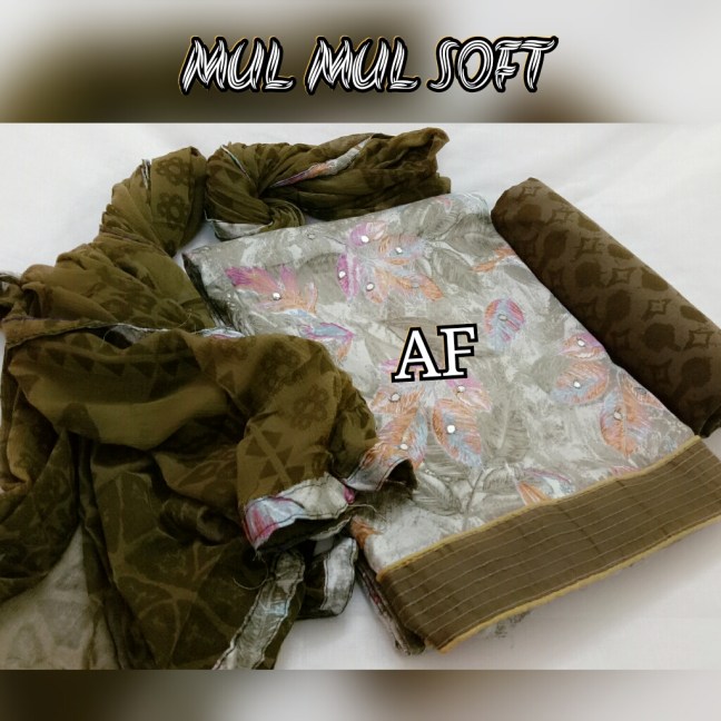 ‼PURE Self Designed Mul Mul Cotton with contrast Daman border highlighted with small mirror foil work. Self Designed cotton bottom and dupatta. Rs.875/-+$ only