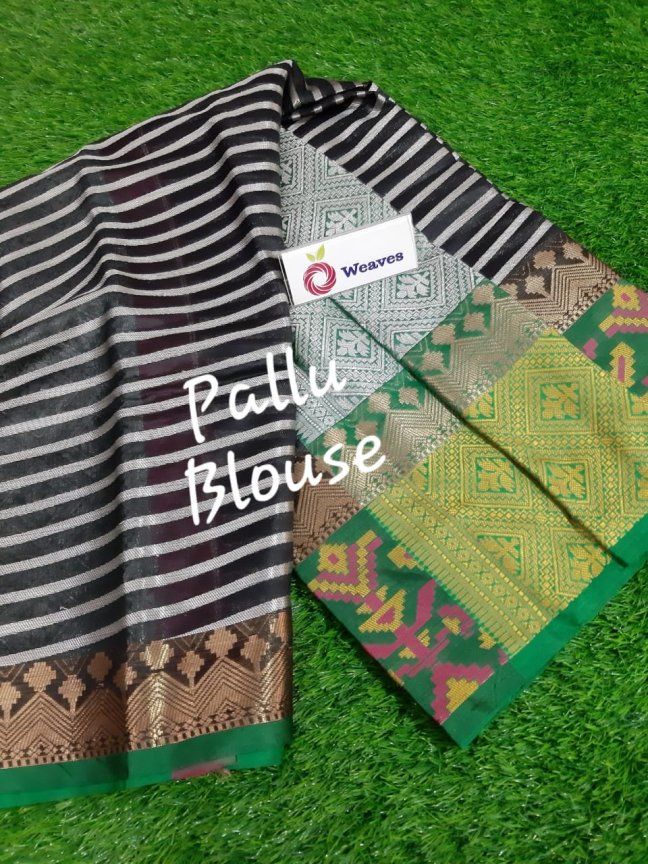 Muslin blended striped sarees Contrast pochampally pattern weaving borders Full saree silver stripes DR Rich weaving blouse and pallu as in pic Rs-1730/-