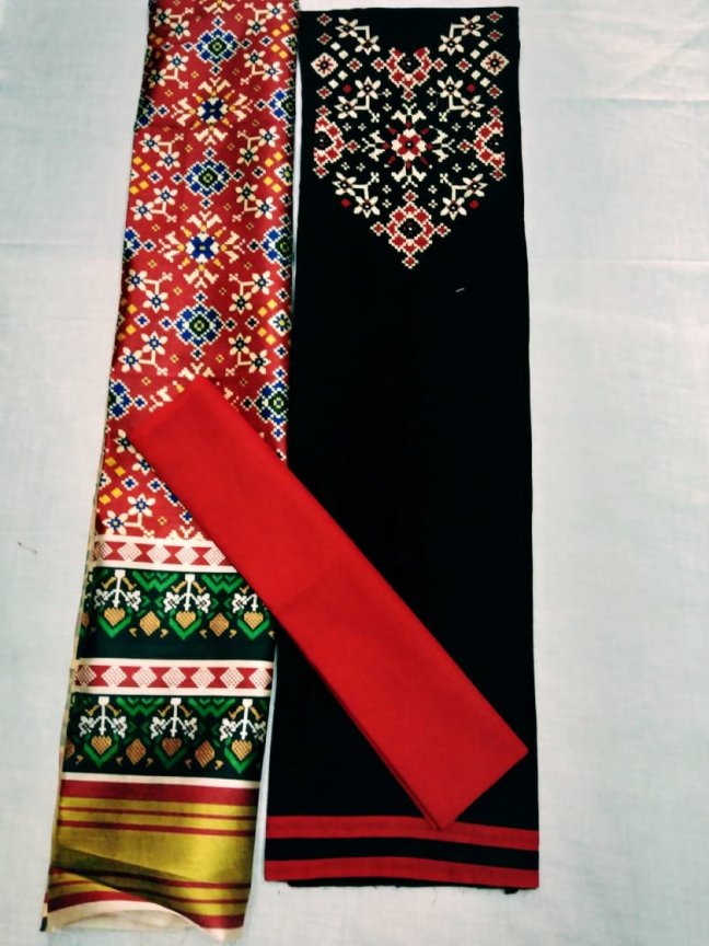 Top slub cotton on embrodery work..2.5 mtr Dupatta chinoy silk printed Bottom cotton DR 985/-