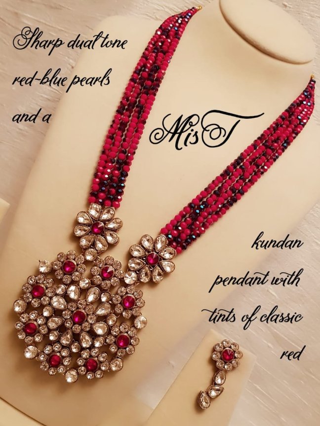 An exciting new range of bold kundan pendant malas in ultra stylish red brown pearl strings. 1680/- Free shipping