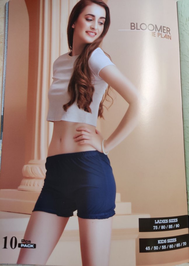 BLOOMER Plain Ladies Sizes: 75/80/85/90 Kids sizes: 45/50/55/60/65/70 Price: 75 - 80= 65/- 85- 90= 75/- Shipping charges extra