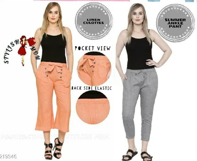 COMBO LINEN CULOTTES LINEN PANTS FABRIC DETAILS COTTON LINEN 🤷♀LENGHT CULOTTES 33 PANTS 35 AVAILABLE SIZE WAIST XL-FIT UPTO 28.30 XXL FIT UPTO 32.34. 36 MD COMBO 💷PRICE 875/- (BOTH) SHIPPING FREE FREE