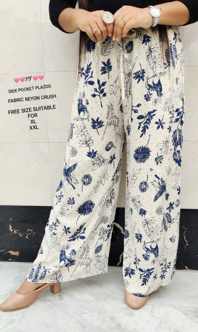 FREE SIZE PLAZZO PRICE: 599/- Free shipping FREE SIZE SUITABLE FORXLXXLXXXL LENGTH - 40 - 41 PRODUCT COLOUR MAY SLIGHTLY VERY DUE TO LIGHTING & SPECIFIC MONITOR SETTING. 04 NEW ARRIVAL-----------------