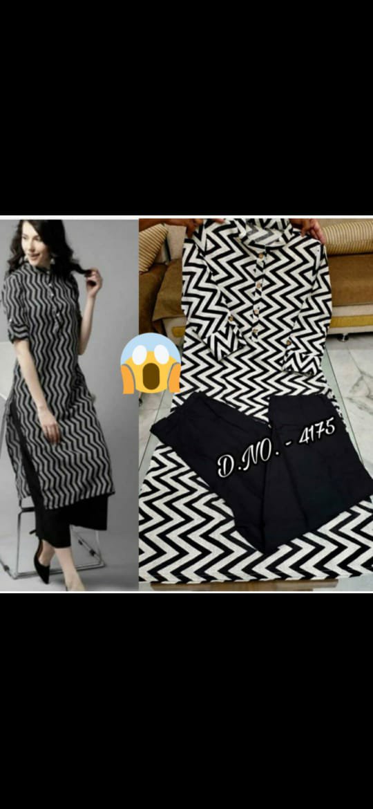 Designer Front Cut Kurti With Palazo SetFabric - CottonSize - M-38 L-40 XL-42 XXL-44 Kurti Length - 46Palazo Length -39 No Dupptta Including in set Rate - 850/- free shipping J
