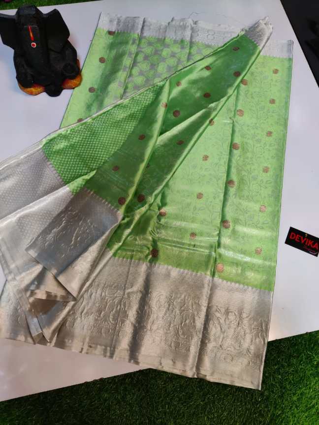 Rich and Soft Tissue with Rich Embroidery all over the Saree with Rich Silver border with Chit Silver Pallu with Tassels and matching Lines Blouse 01 at Rs 1599 Shipping free